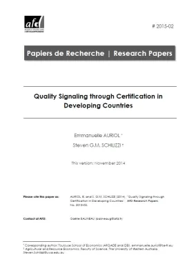 This paper studies how the signaling of the credence attributes of consumer goods distorts their market equilibrium in developing countries. Costs of certification, sunk in order to achieve credibilit...