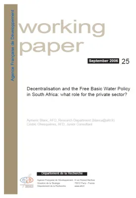 Decentralisation and the Free Basic Water Policy in South Africa: What Role for the Private Sector?