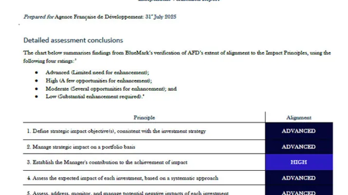 As a signatory to the Operating Principles for Impact Management, AFD is required to publish an annual Disclosure Statement describing how its impact management system is aligned with each of the 9 Pr...