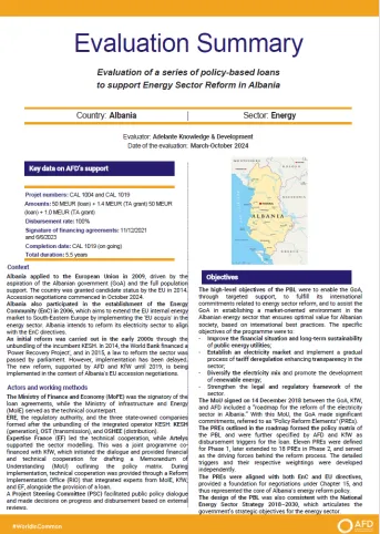 Evaluation of a series of policy-based loans to support the energy sector reform in Albania (CAL1004 ; CAL1019)