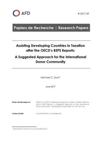 Assisting Developing Countries in Taxation after the OECD’s BEPS Reports: A Suggested Approach for the International Donor Community