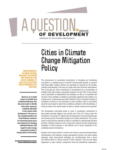 Based on an in-depth review of scientific and institutional literature, this document seeks to identify what urban measures contribute efficiently to low-carbon urban development. It focuses on the complementarity to be found between measures for structuring urban space and measures for changing individual behavior with regard to urban energy consumption (mainly in transportation and housing).