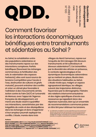 Au Sahel, les systèmes agropastoraux traditionnels impliquent des interactions économiques et sociales entre éleveurs transhumants et populations sédentaires. Or, si la complémentarité économique favorise les échanges de biens, de services et de savoir-faire, la cohabitation génère également des tensions. À partir d’une étude menée dans le Nord Cameroun, cet article analyse la nature et l’ampleur de ces interactions. Il interroge aussi les leviers disponibles pour dépasser les tensions et propose, à cet égard, plusieurs recommandations.