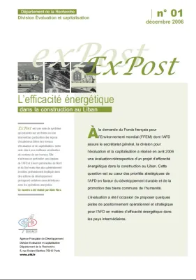 Le projet évalué porte sur la préparation d‘une réglementation thermique et énergétique des bâtiments neufs en Tunisie, conduite selon un processus original dit d‘« anticipation expérimentale ». L’obj...