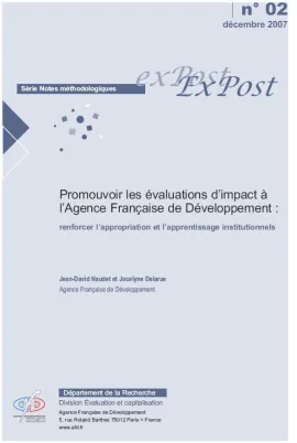 En 2006, la division Évaluation de l’Agence Française de Développement (AFD) a été intégrée au Département de la Recherche, dans le but d‘introduire une dimension de recherche dans le travail d‘évalua...