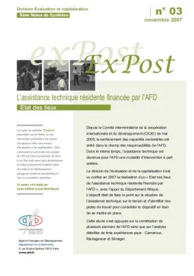 Etat des lieux de l’assistance technique résidente financée par l’AFD