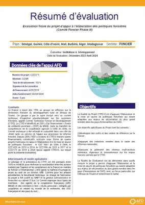 Evaluation finale du projet d’appui à l’élaboration des politiques foncières (Comité Foncier Phase III), Multi...
