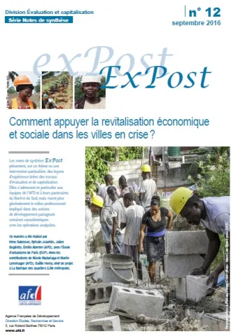 L’AFD est régulièrement sollicitée pour appuyer des projets urbains dans des contextes post-crise (que ces crises aient été d‘origine politique ou liées à des catastrophes naturelles). Au-delà de la simple reconstruction du bti, ces demandes posent la question de la revitalisation durable des dynamiques sociales et économiques. Une étude réalisée par l’École d‘urbanisme de Paris1 a analysé une trentaine de projets portant sur les secteurs de la construction et des services essentiels. Ceux-ci ont été engagés entre 2005 et 2015 par l’AFD et par d‘autres donateurs, en Haïti, en République centrafricaine et dans divers pays. Centrés sur la relance économique et le renforcement des dynamiques sociales, plusieurs types d‘actions sont présentés ici.
