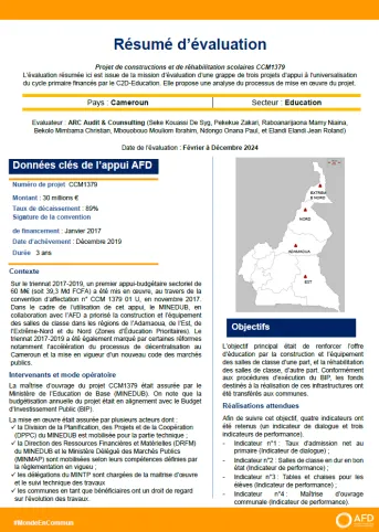 Evaluation d’une grappe de projets d’appui à l’universalisation du cycle primaire financés par le C2D-Education au Cameroun (CCM1379-CCM1577-CCM3017)
