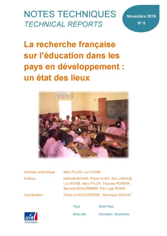 Cette publication dresse de manière inédite un état des lieux analytique de la recherche sur l’éducation dans les pays du Sud, depuis la France, à travers les dimensions suivantes : une « cartographie » des capacités de recherche en France consacrées à ce champ (équipes et/ou chercheurs concernés, programmes en cours), la recension de toutes les thèses soutenues en France depuis 1990 et celles en cours en 1993, la production scientifique sur la période 1990-2013. Viennent en complément un inventaire des formations de master en éducation en France qui intègrent une dimension internationale ou de développement, et une recension des structures françaises, hors du monde académique et scientifique, productrices de connaissances sur l’éducation au sud. En regard de l’importance accordée à l’éducation, ce travail met avant tout en lumière une recherche française qui, bien que productive, demeure peu développée, faiblement structurée, une insuffisance des offres de formation de niveau master et une faiblesse des relations entre monde de la recherche et celui et l’action.
