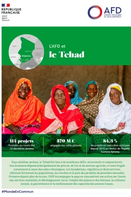 L’AFD se mobilise au service de la politique nationale genre du Tchad pour promouvoir l’égalité femmes-hommes et renforcer les droits et l’autonomisation des femmes dans toutes les sphères de la société. Son objectif ? Favoriser un développement plus inclusif et équitable. À travers ses outils, le Groupe AFD soutient les politiques publiques, appuie les acteurs locaux et favorise l’accès des femmes aux services essentiels et aux opportunités économiques, en cohérence avec la diplomatie féministe française et le Plan Tchad Vision 2030. Il appuie les Objectifs de développement durable sur l’égalité de genre, la lutte contre la pauvreté et la paix.