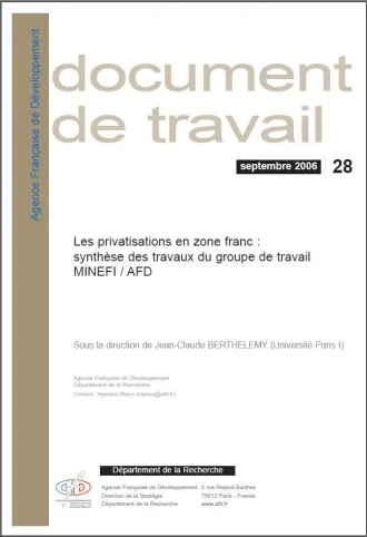 Les ministres des Finances de la zone franc, lors de la réunion d‘avril 2005 à Cotonou, ont décidé d‘engager un travail de réflexion sur les privatisations. De nouveau réunis en septembre 2005 à Paris, ils ont formé un groupe de travail composé d‘experts des différentes institutions de la zone franc (Banques centrales, Unions économiques et monétaires, ministères des Finances nationaux, Afristat) afin d‘approfondir la réflexion aussi bien à l’échelle de la zone franc qu’à l’échelle régionale ou nationale. Leurs travaux devaient permettre d‘apporter une réponse aux préoccupations des Etats membres de la zone franc sur le rôle des privatisations et des partenariats public-privé dans le développement. Cette publication n‘est pas un travail de recherche visant à traiter l’ensemble des questions soulevées par les privatisations en zone franc, mais la synthèse des réflexions de différents experts de ces questions et de leurs recommandations opérationnelles aux autorités de la région.
