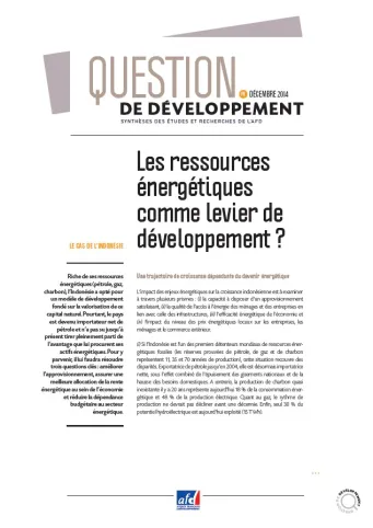Riche de ses ressources énergétiques (pétrole, gaz, charbon), l’Indonésie a opté pour un modèle de développement fondé sur la valorisation de ce capital naturel. Pourtant, le pays est devenu importateur net de pétrole et n’a pas su jusqu’à présent tirer pleinement parti de l’avantage que lui procurent ses actifs énergétiques. Pour y parvenir, il lui faudra résoudre trois questions clés: améliorer l’approvisionnement, assurer une meilleure allocation de la rente énergétique au sein de l’économie et réduire la dépendance budgétaire au secteur énergétique.