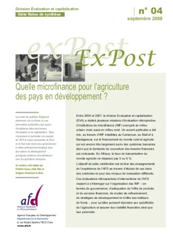 Quelle microfinance pour l'agriculture des pays en développement ?