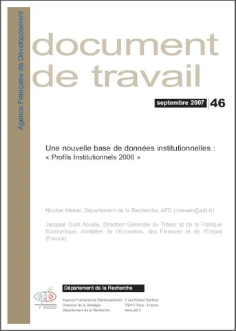 La base de données « Profils Institutionnels 2006 » offre une batterie de 356 variables pour 85 pays en développement, en transition, et développés, représentant 90 % du PIB et de la population de la planète. Une première version de la base, éditée en 2001, couvrait 51 pays. La prochaine enquête aura lieu en 2009. Ce document détaille les hypothèses de départ, la méthode d‘élaboration et les résultats d‘une première exploration statistique de la base.